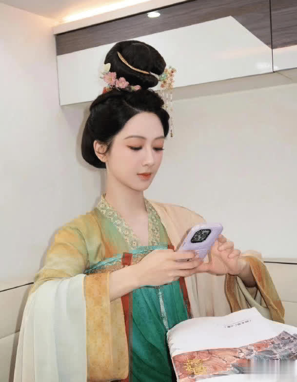高高的发包顶在头顶,但放在杨紫身上却一点不丑,反而更显得她整个人修长,苗条了好多,就是身着唐装,手里却是手机,这个场面好像有点割裂啊!